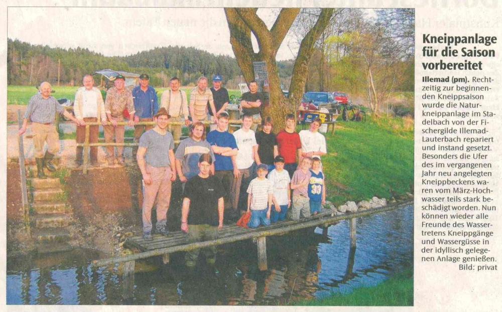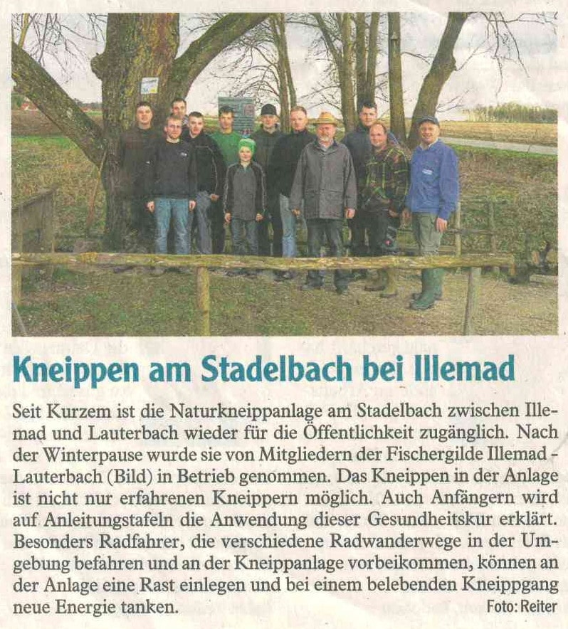 Im Frühjahr 2002 wurde in Absprache und mit Unterstützung der Gemeinde Buttenwiesen von Mitglieder der Fischergilde der schon länger ins Auge gefasste Bau einer Naturkneippanlage am Stadelbach realisiert. So wurde im Bach von einem Baggerbetrieb das Kneippbecken ausgehoben und das Ufer des Beckens mit Flussbausteinen befestigt. Mitglieder der Fischergilde fertigten in mehreren hundert Stunden ehrenamtlicher Arbeit die Wasserbank, den Handlauf im Kneippbecken sowie eine Wasserhandpumpe samt Becken.
